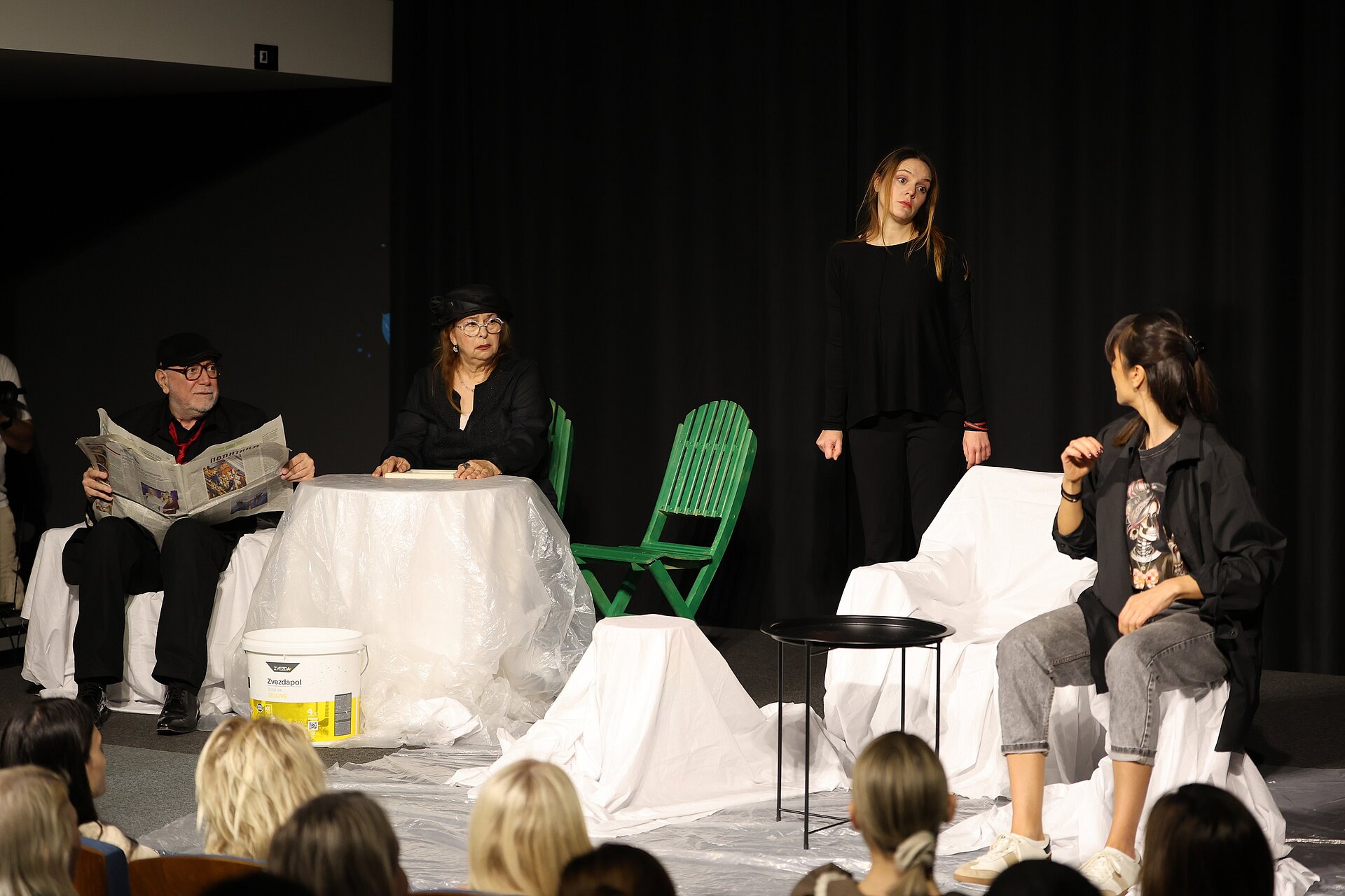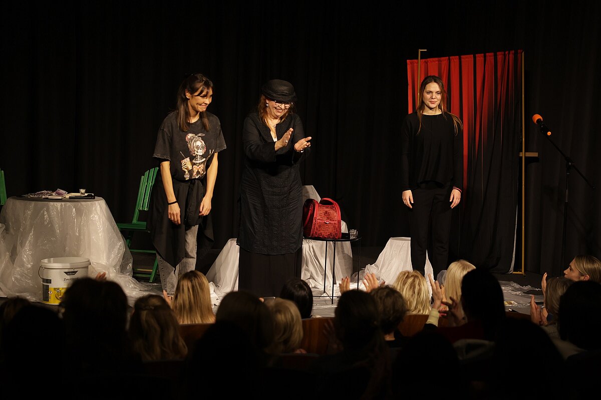 „Jedini način da budem na sceni pored tri žene koje mnogo pričaju jeste da se pravim mrtav“, u šali je rekao reditelj Mensur pre predstave.