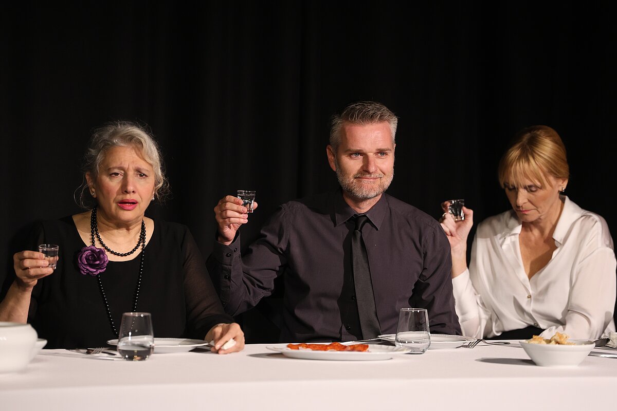 Представа „Заједно“ по други пут је окупила публику на Дорћолу, а сјајна глумачка постава из Српског народног позоришта у Новом Саду заблистала је на „даскама које хуманост значе“. Емотивна представа у фокус ставља сложене динамике, неразјашњене односе и потиснуте емоције које испливају када се породица окупи за столом након смрти блиске особе. Редитељка Јана Маричић истражује теме љубави, кајања и суочавања с прошлошћу, а изванредни Гордана Ђурђевић Димић, Ненад Пећинар, Јасмина Вечански Кујунџић, Бојана Ординачев, Бранислав Јерковић и Југослав Крајнов беспрекорно дочаравају породицу — не ону савршену, већ стварну, рањиву, огољену до истине.